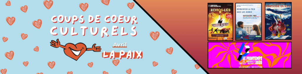 L’actualité devient de plus en plus inquiétante, en revanche, celle de nos membres devient acte de résistance ! Le printemps arrive et avec lui tous les espoirs de paix sont permis !Si depuis bien des années, Question de Cœur porte les valeurs du vivre ensemble par la culture et les arts, aujourd’hui nous donnons la parole à nos membres par leur évènements ou créations artistiques ainsi qu’aux jeunes pour parler de paix, pour la poser dans la conscience, le cœur et les actes de notre société. Se taire n’est plus une option !